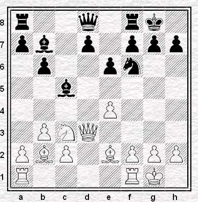 I'd wanted to prevent e4-e5 with ... Qd8-c7 but was worried about Nc3-b5. Forget for the moment any question of whether the knight move is anything for Black to worry about. If you wanted to stop White advancing his king's pawn by moving your queen to the b8-h2 diagonal and were worried about the knight coming to b5, wouldn't it occur to you to think about moving her majesty to b8 out of Neddy's reach? Well I'm afraid it didn't occur to me even though I had several days to think about it.
